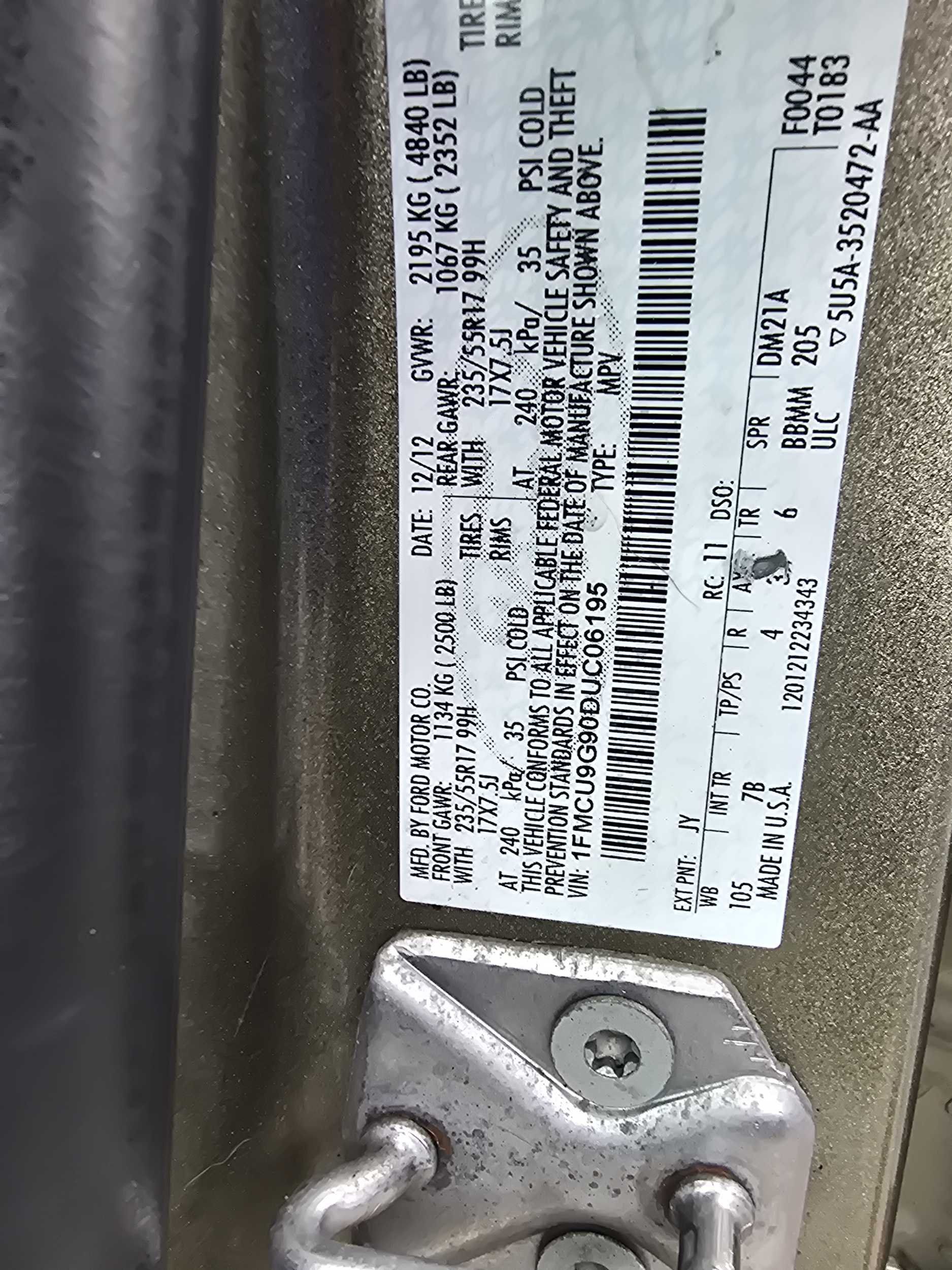 Cargo floor type: Carpet cargo area floor